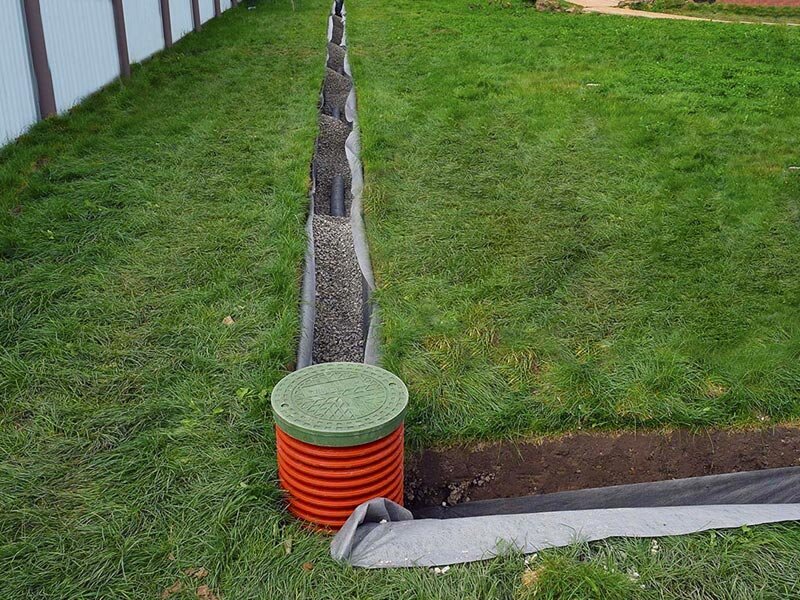 Глубина заложения дренажных труб: от 1 до 3 метров (в зависимости от уровня грунтовых вод).